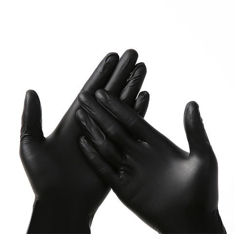 100% Nitrilo 9 pulgadas Guantes de peluquero negros Salón de belleza Guante de uñas Guantes de nitrilo negros sin látex